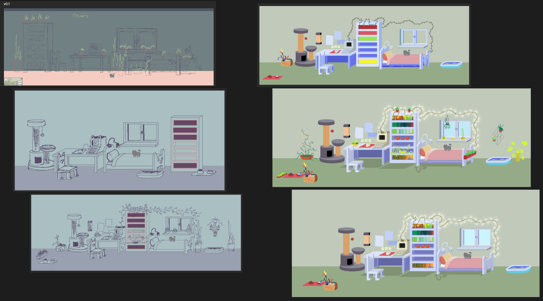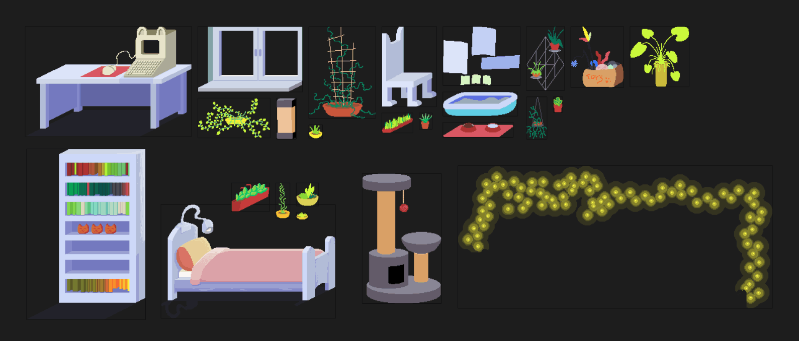 Assety oraz tła do gry mobilnej Among Clouds, wykonane w programie Asperite.